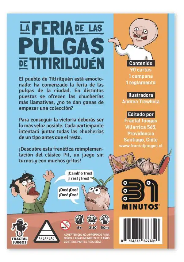 El pueblo de Titirilquén está emocionado: ha comenzado la feria de las pulgas de la ciudad. En distintos puestos se ofrecen las chucherías más llamativas. Para ganar deberás ser lo muy velóz. Debes juntar todas las chucherías de un tipo antes que el resto.